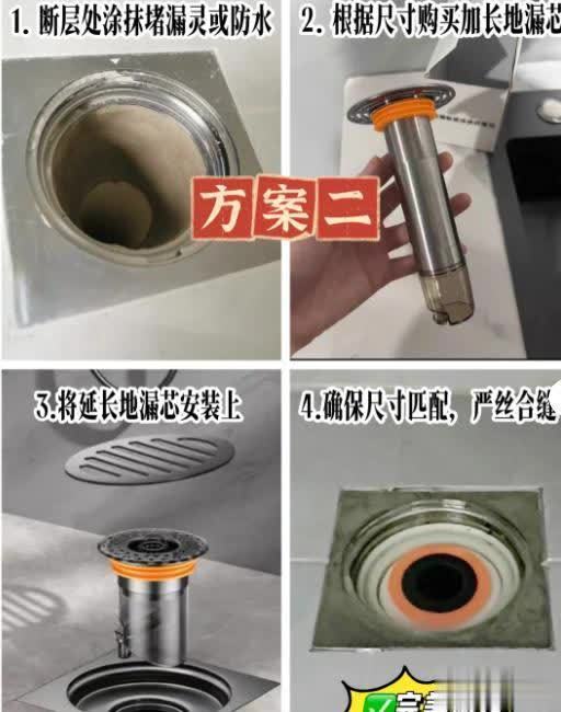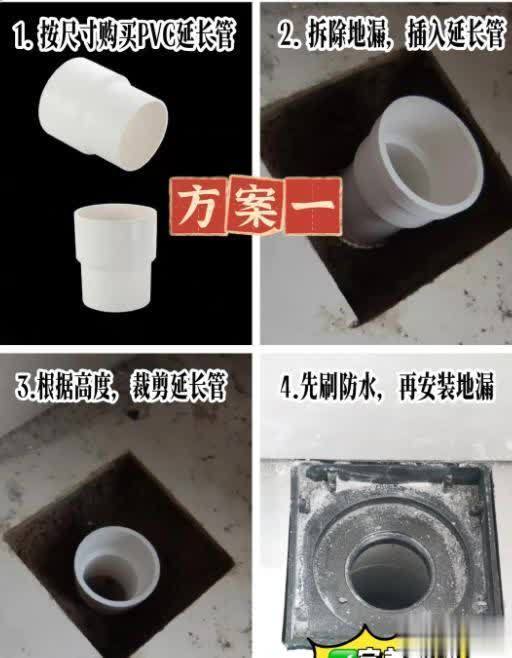 第一种:先拔除地漏,再用PVC延迟管补断层 ,从源流上解决断层问题,我家等于采纳的这种。