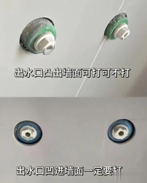 第一种:角阀出水口凹进墙砖平面,一定要打!