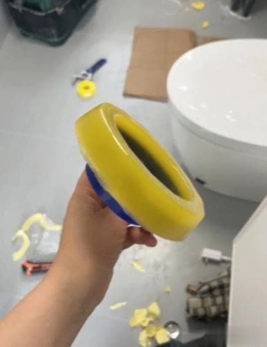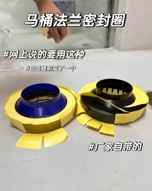 这种黄色的马桶法兰劝你们别用,用了马桶会被它弹起来,根柢无法装配,说这玩意儿还没送的好。是以劝全球,别被割韭菜,这个坑我也曾替你们踩过了。